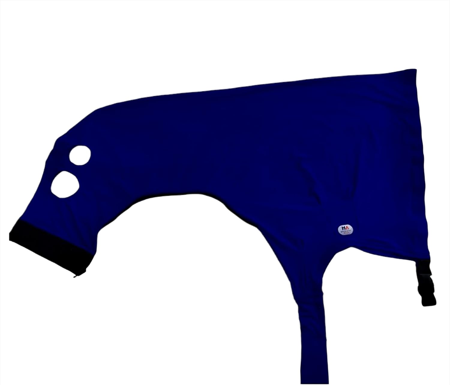 Crafted from premium heavy Spandex/ Elastane, Majestic Ally's horse hoods ensure optimal warmth and unparalleled comfort for your equine companion. The silky soft material with a four-way stretch lycra guarantees a gentle and form-fitting experience, preventing any discomfort or rubbing. Featuring a 2" wide elastic band, fleece-lined around the nose and jaw, this hood minimizes friction. The wide elastic wrap around the belly, coupled with a heavy-duty buckle, ensures a secure fit. With large eye openings and a zipper from chin down to chest, these hoods offer effortless on/off convenience. Versatile enough to be worn under a blanket or on their own, these hoods provide the utmost comfort for your horse. Key Features: - Four-way stretch fabric - Wide elastic belly wrap - Heavy-duty buckle for secure fit - Large eye openings - Front zipper for easy on/off - Soft and comfortable fit - Fleece-lined nose for a soft touch - Suitable for wearing under a blanket - Won't rub, pinch, or irritate horse - Made with 100% heavy spandex/elastane Choose Majestic Ally for top-tier quality, comfort, and style for your horse.