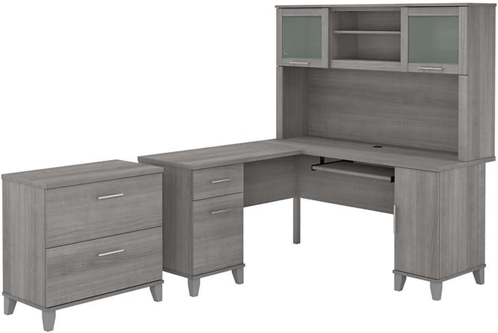 | Model Name | Pemberly Row Engineered Wood 60W L Shaped Desk Hutch and Lateral File - Ash Gray |