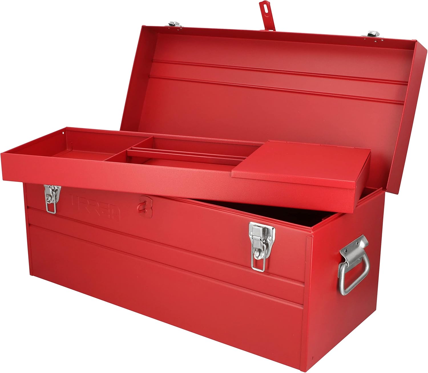 The specially formulated paint coating, designed to protect and resist under the most extreme circumstances, is applied with a special process to avoid environmental pollution, thus ensuring high quality for the product while protecting the environment. Trays for organizing sockets or tools, as needed. Spacious bottom area to store, organize, and protect your tools. Chrome plated metallic latch to prevent corrosion. High-resistance die-cast PVC plastic handle with metal reinforcement around the bottom, allowing a firm and secure grip. Features a security latch that can be padlocked for greater security. The specially formulated paint coating, designed to protect and resist under the most extreme circumstances. Trays for organizing sockets or tools, as needed. Spacious bottom area to store, organize and protect your tools.